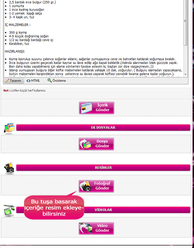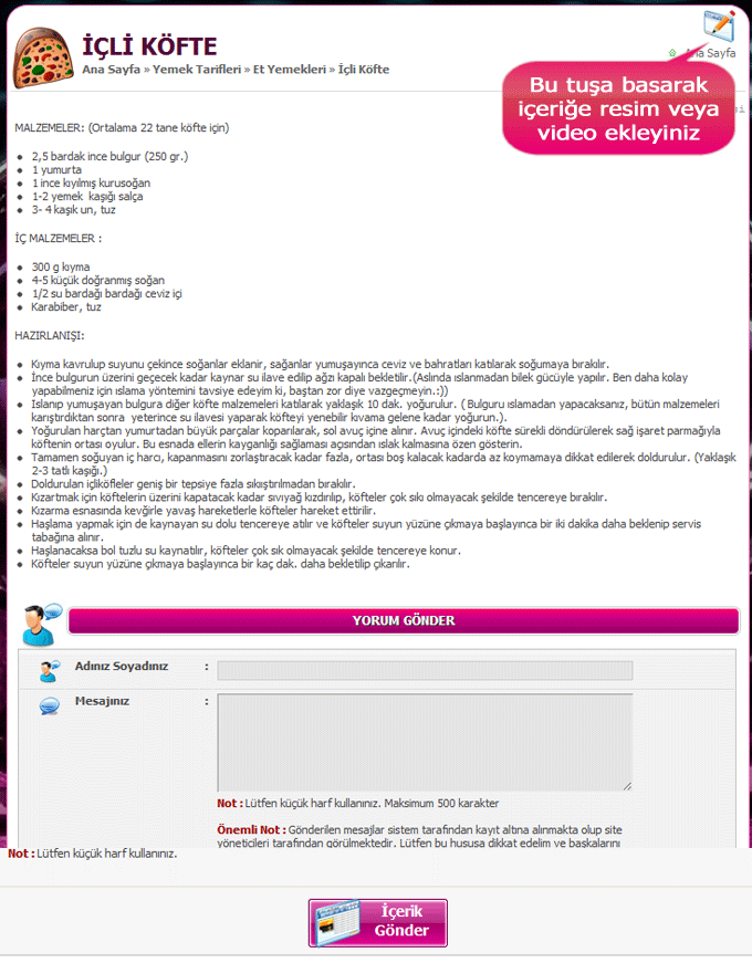 Bilgi giriþ iþlemi bittikten sonra Ýçerik Gönder tuþuna basarak içeriðinizi gönderebilirsiniz.
